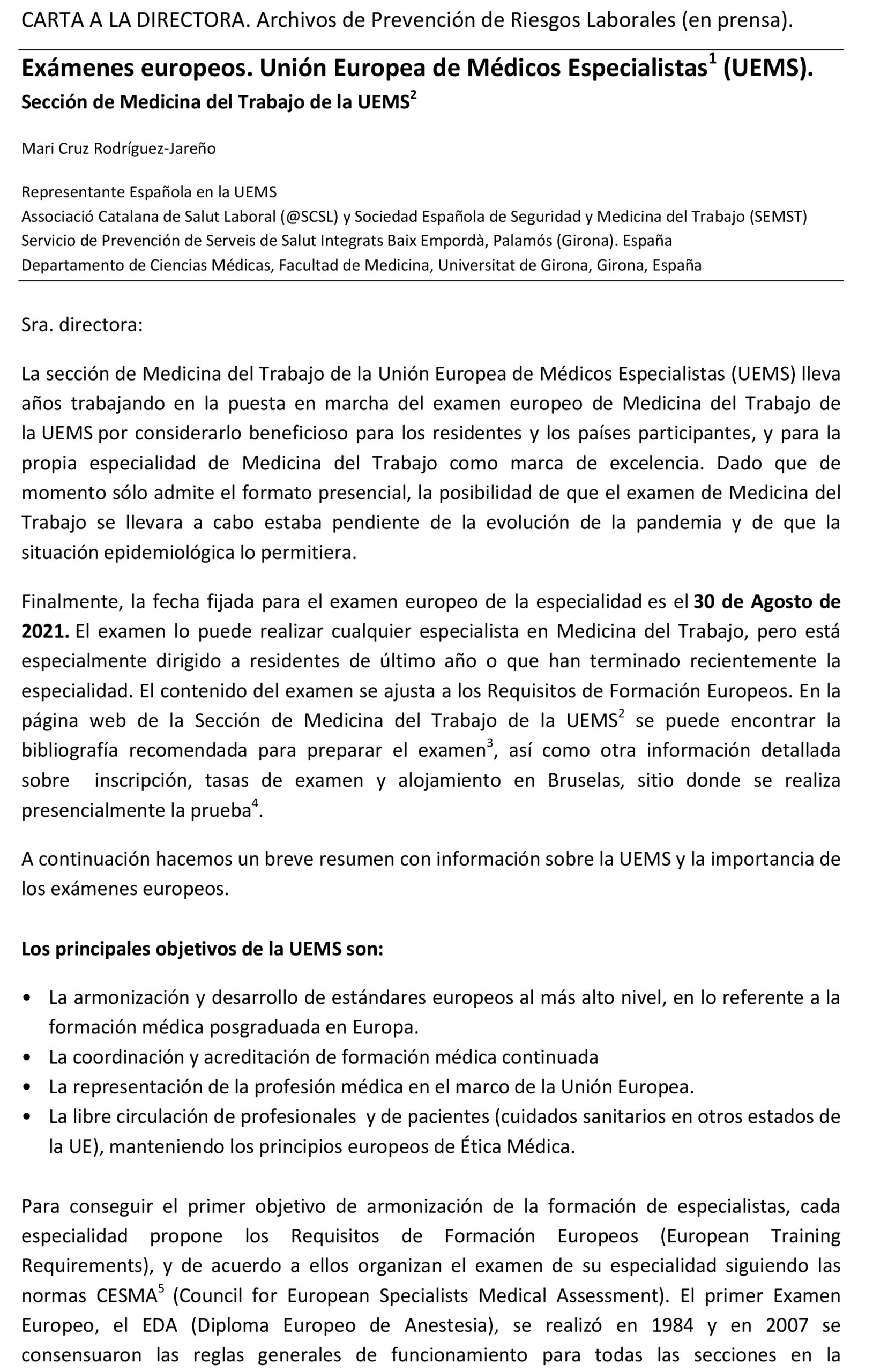 Examen europeo de medicina del trabajo. 30 agosto 2021.
